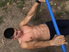 Muscle boy Gaston Bayer gets a handjob his big dick
