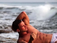 Blond muscle hunk boy Robi Dane gets handjob his big dick